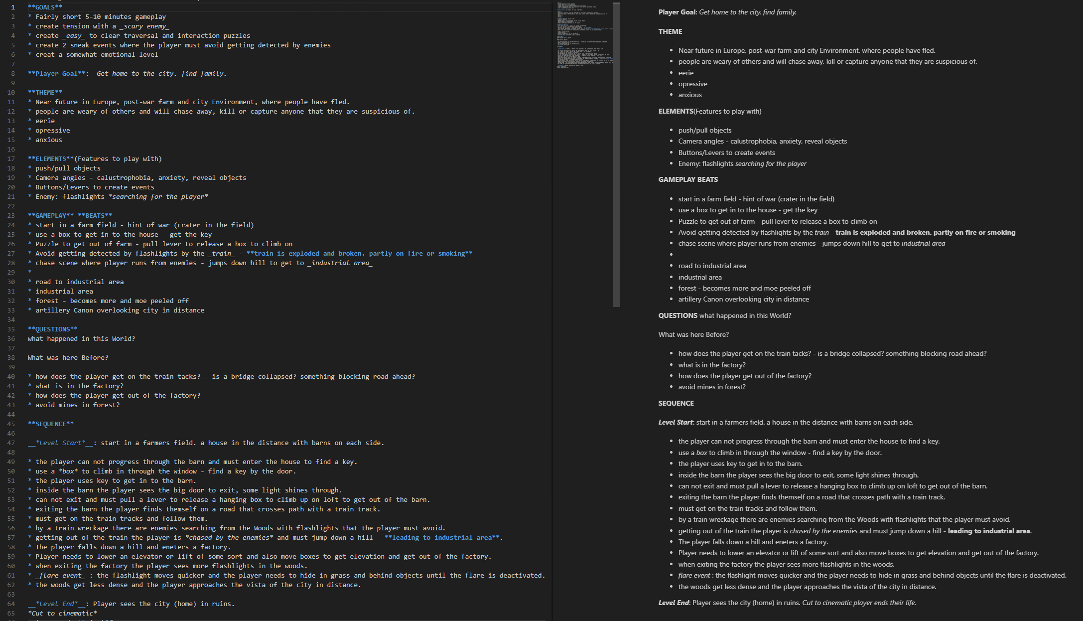 To get started I wrote a text document where I outlined the level from start to finish. This served as a foundation in the sketch & blockout stages.