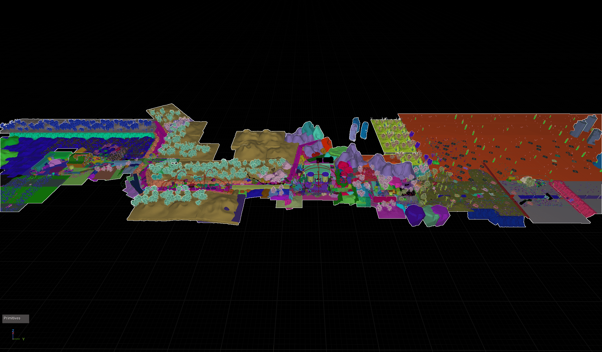 The problem was that as the number of meshes increase, performance began to drop. To address this, I converted large sections of the landscape into editable level intances, reducing the number of actors while maintaining flexibility.